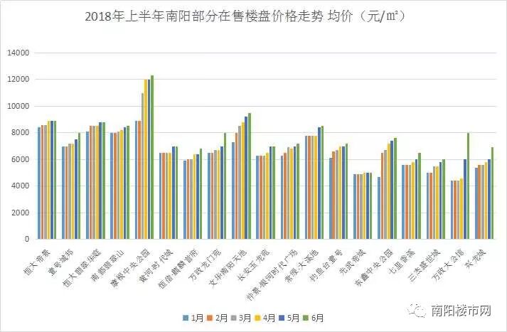 据南阳楼市网走访市区各大楼盘,并跟踪整理2018年上半年南阳市区20余家在售楼盘价格走势,从下图看出,南阳市区主要楼盘价格出现明显波动,房价大幅上涨,楼市异常火爆。